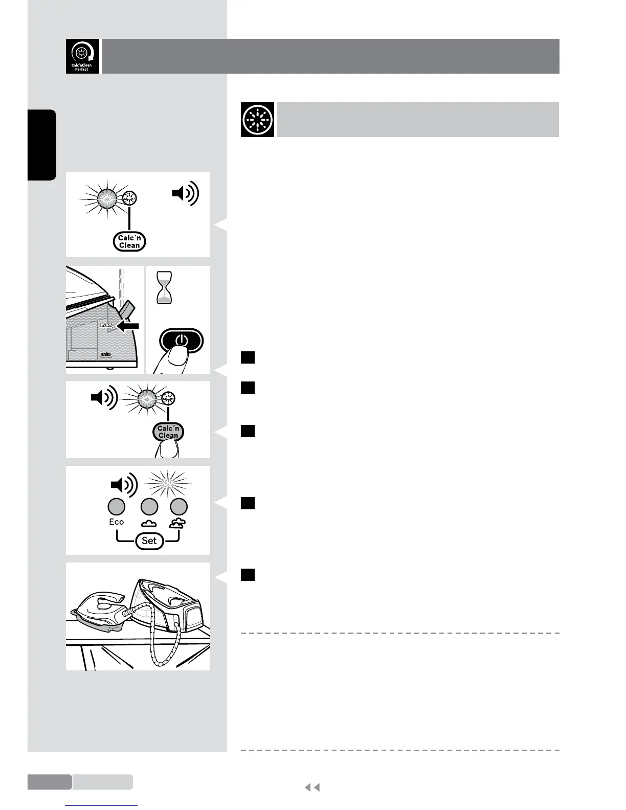 5 Place the iron on the "Calc'nClean" container (19).