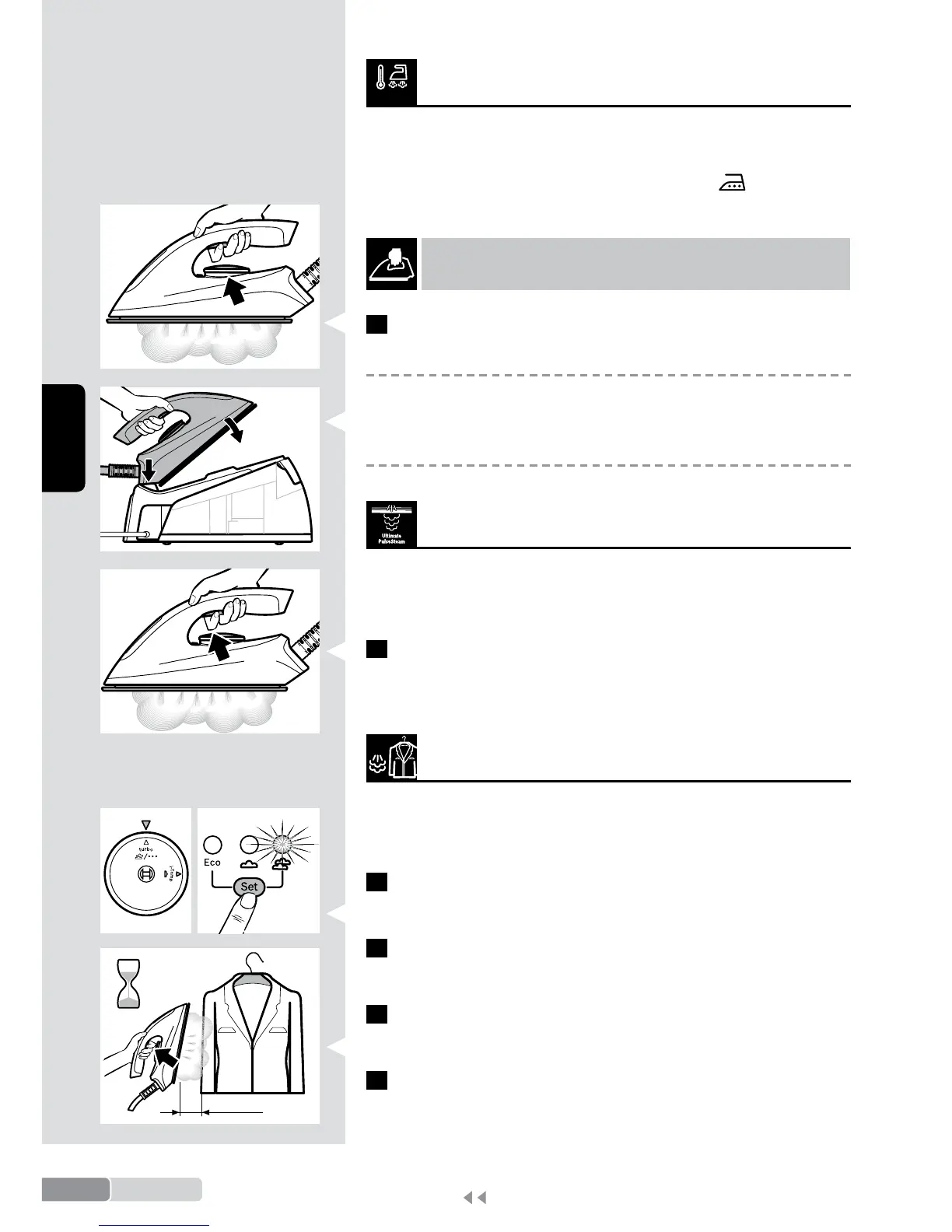 3 Tenere il ferro da stiro in verticale a una distanza di