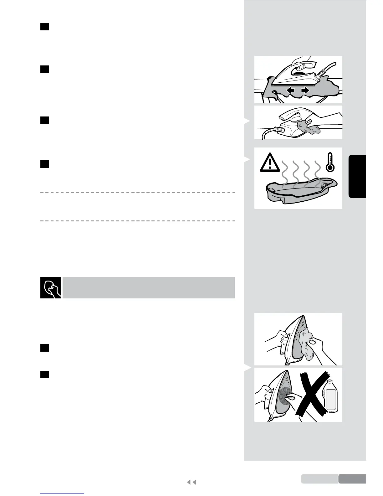ogni residuo facendo scorrere il ferro da stiro caldo