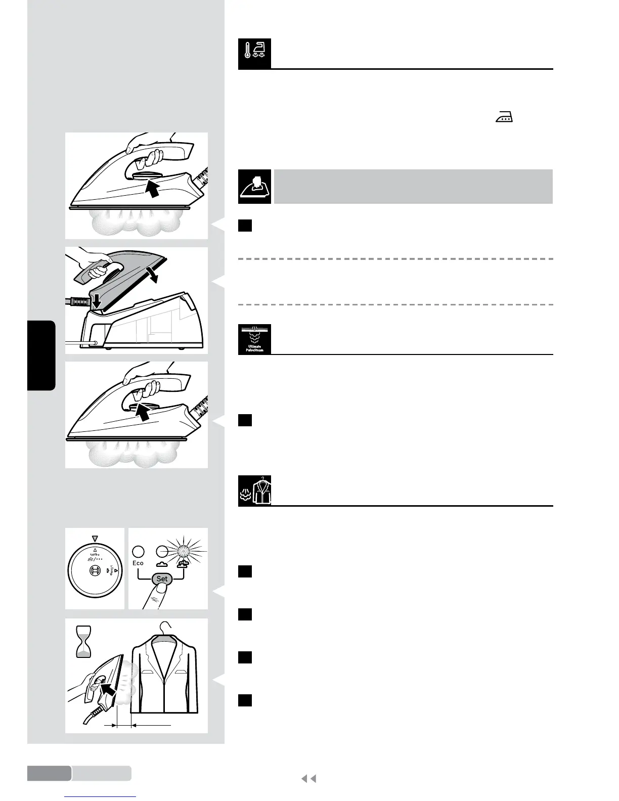 1 Druk voor het strijken met stoom op de stoomknop