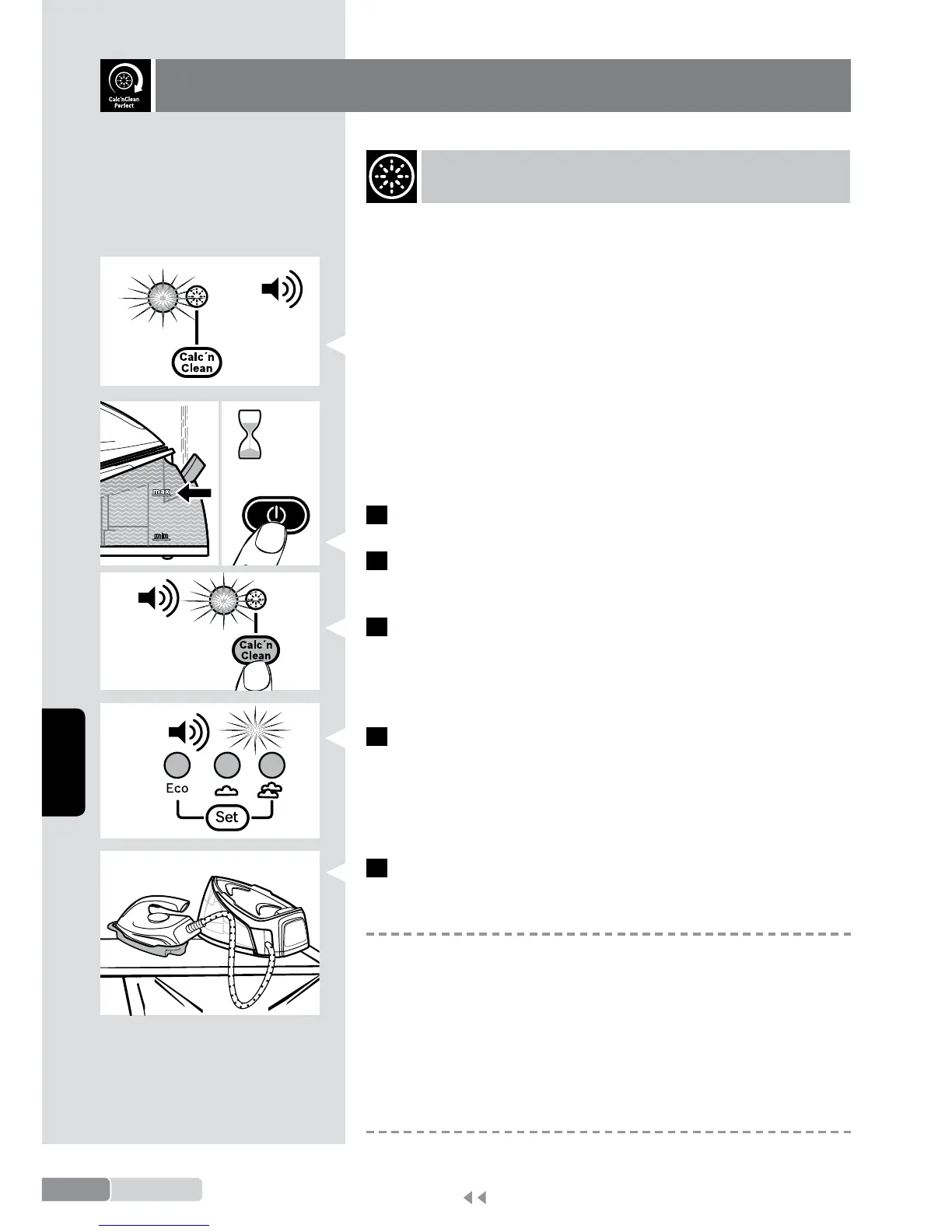 5 Coloque o ferro no recipiente “Calc’nClean” (19).