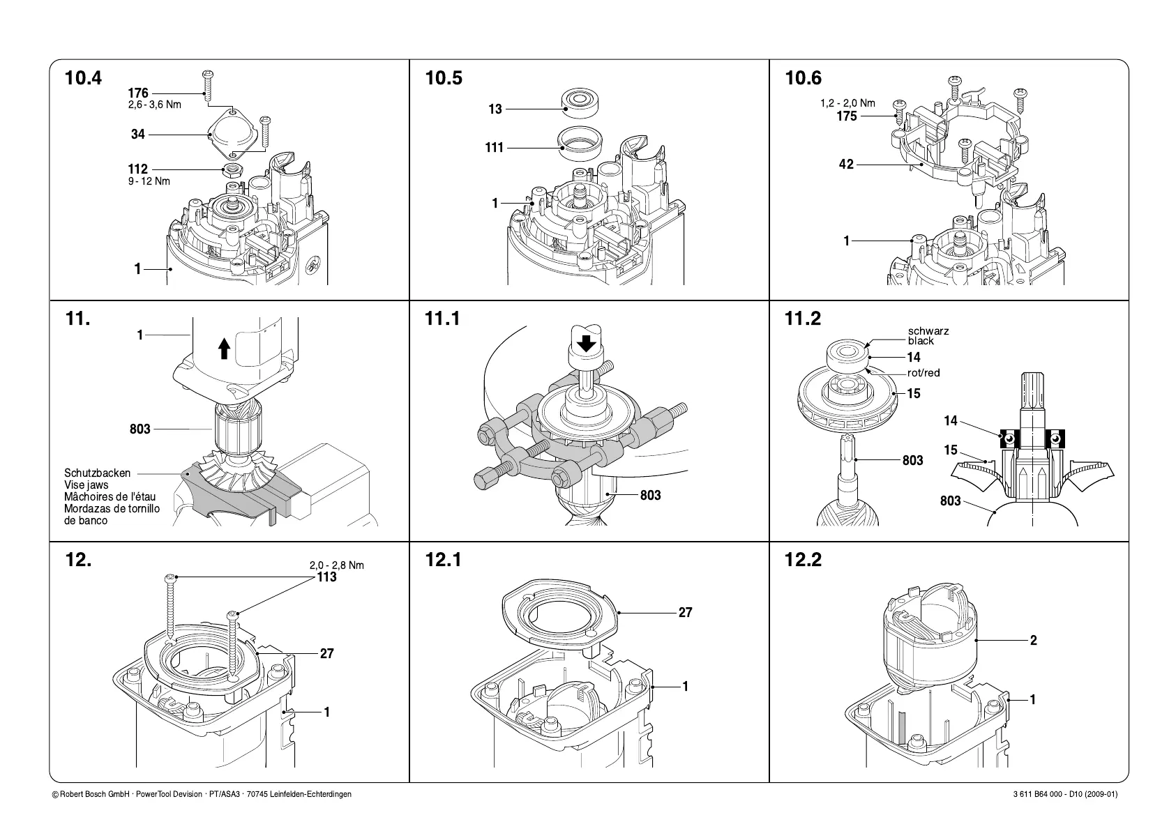 Bosch 3 611 B64 000 - Component Reassembly; Steps 10.4 to 10.6; Steps 11 to 11.2; Steps 12 to 12.2
