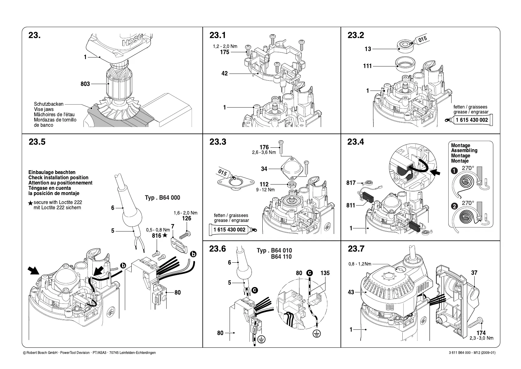 Bosch 3 611 B64 000 - Final Assembly Steps; Step 23: Securing Components; Steps 23.1 to 23.3; Step 23.4: Mounting Orientation
