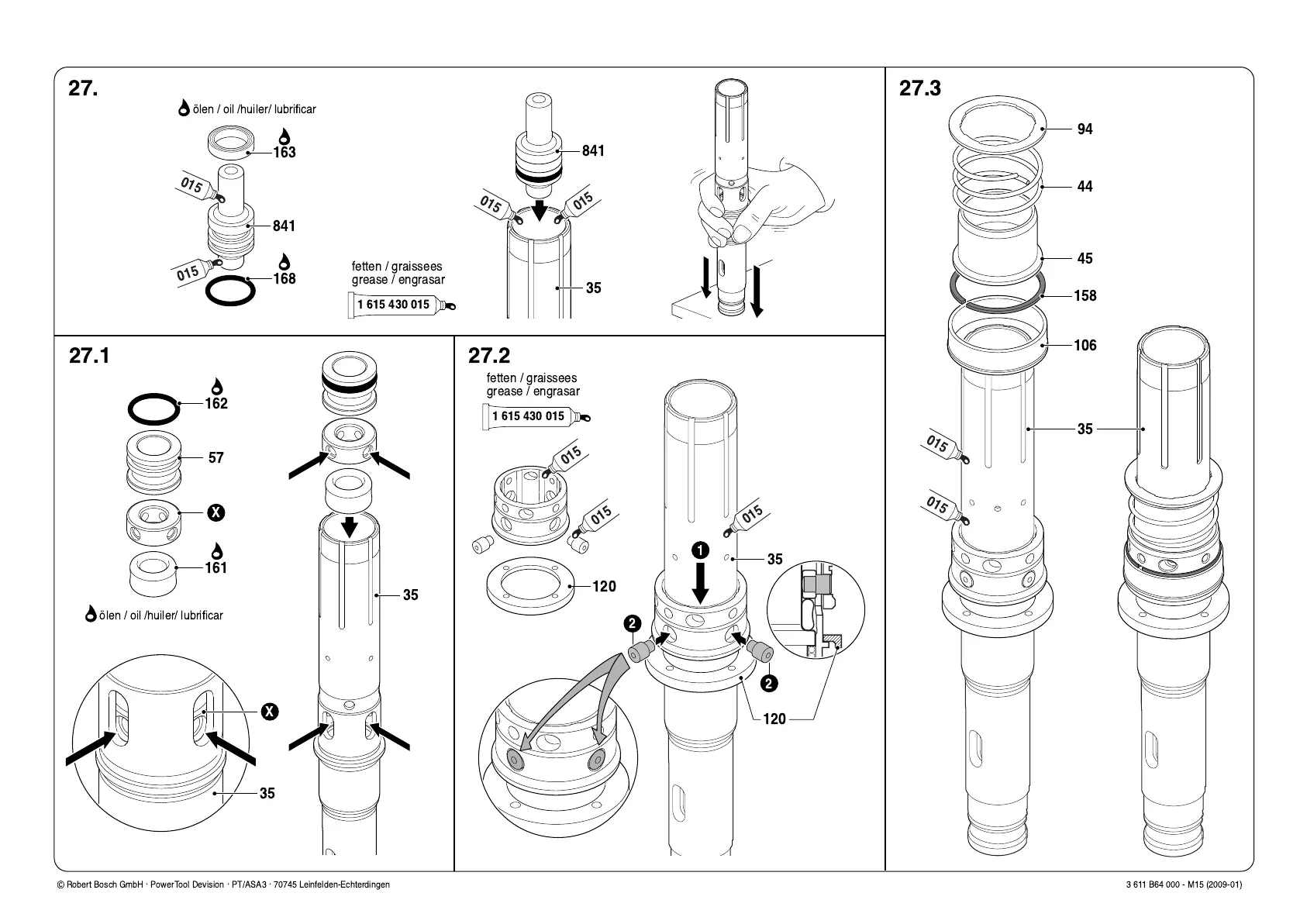 Bosch 3 611 B64 000 - Internal Mechanism Assembly; Steps 27 to 27.1; Steps 27.2 to 27.3