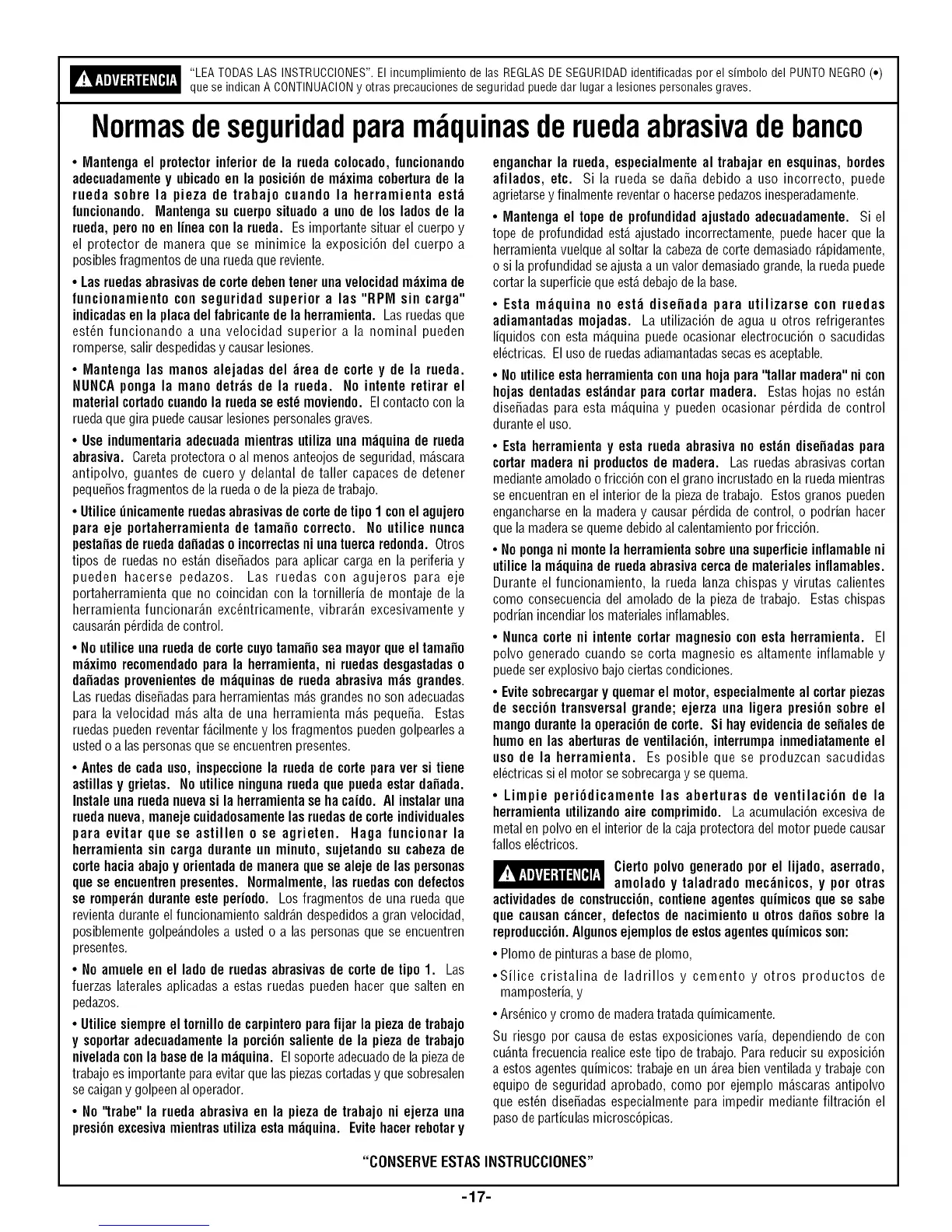 utilice la mdquina de rueda abrasiva cercade materiales inflamables.