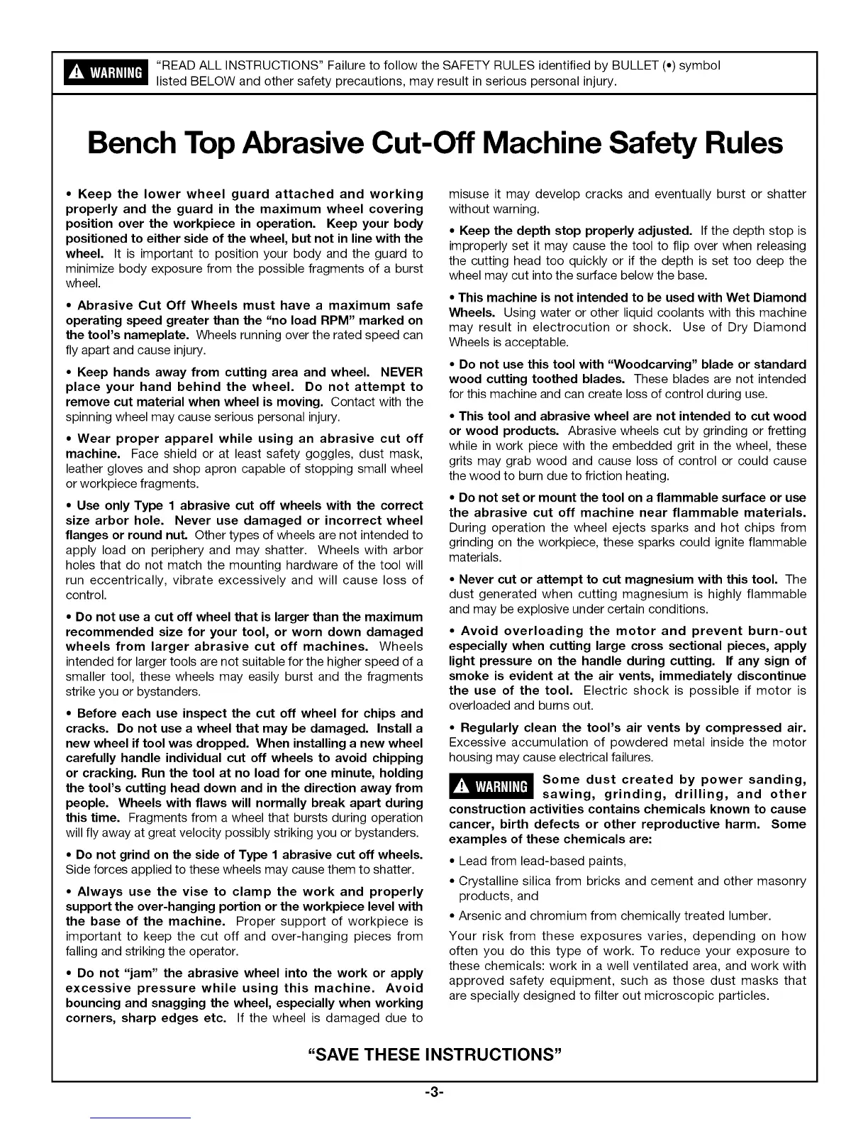 Bench Top Abrasive Cut-Off Machine Safety Rules