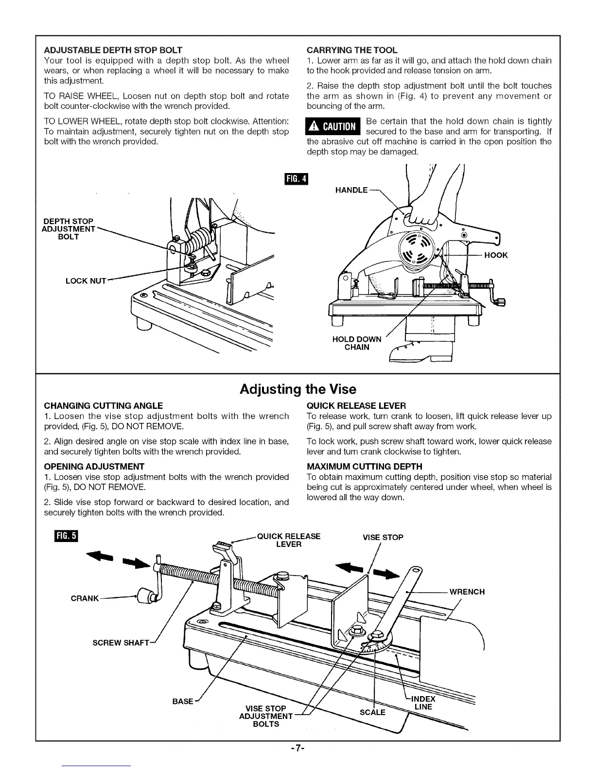 the abrasive cut off machine is carried in the open position the