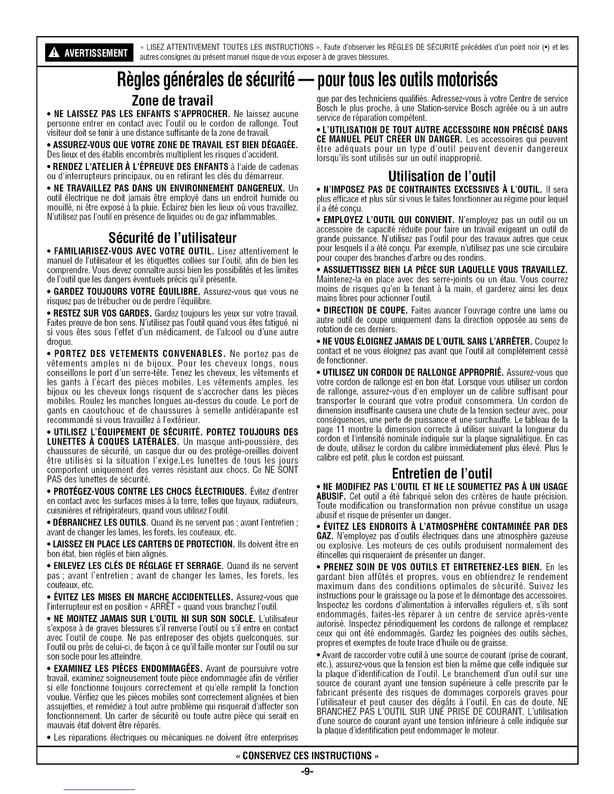 • FAMILIARISEZ-VOUSAVECVOTREOUTIL. Lisez attentivement le
