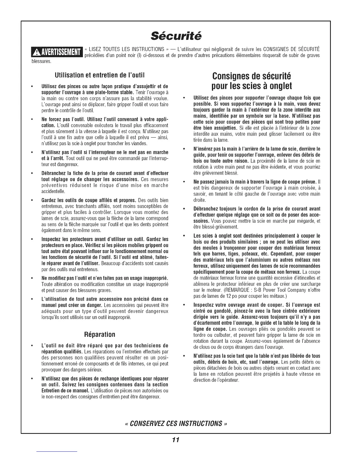 sur le moteur. (REMARQUE: S-B Power Tool Companyn'offre