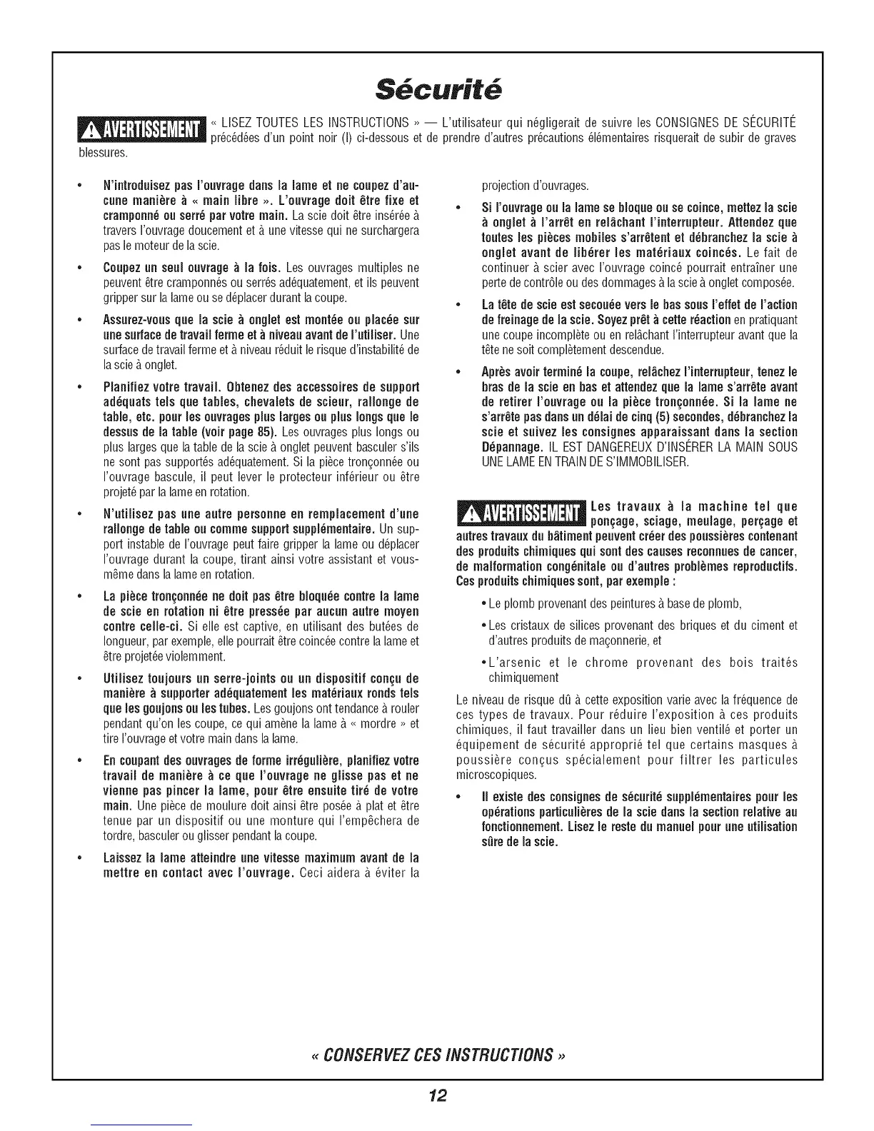 • Assurez-vous que la scie _ onglet est monroe ou platte sur