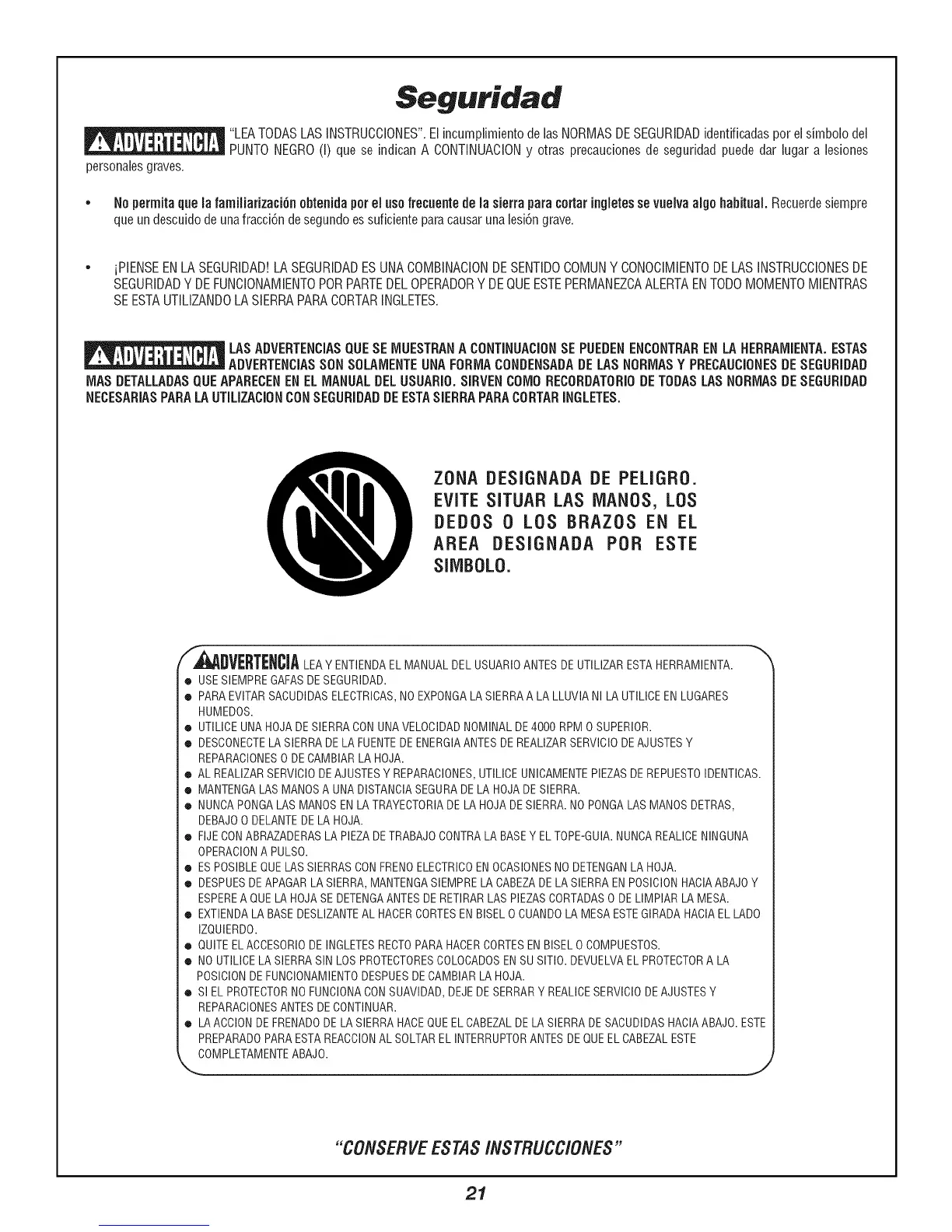 "LEA TODAS LAS INSTRUCCIONES". El incumplimiento de las NORMAS DE SEGURIDAD identificadas per el simbolo del