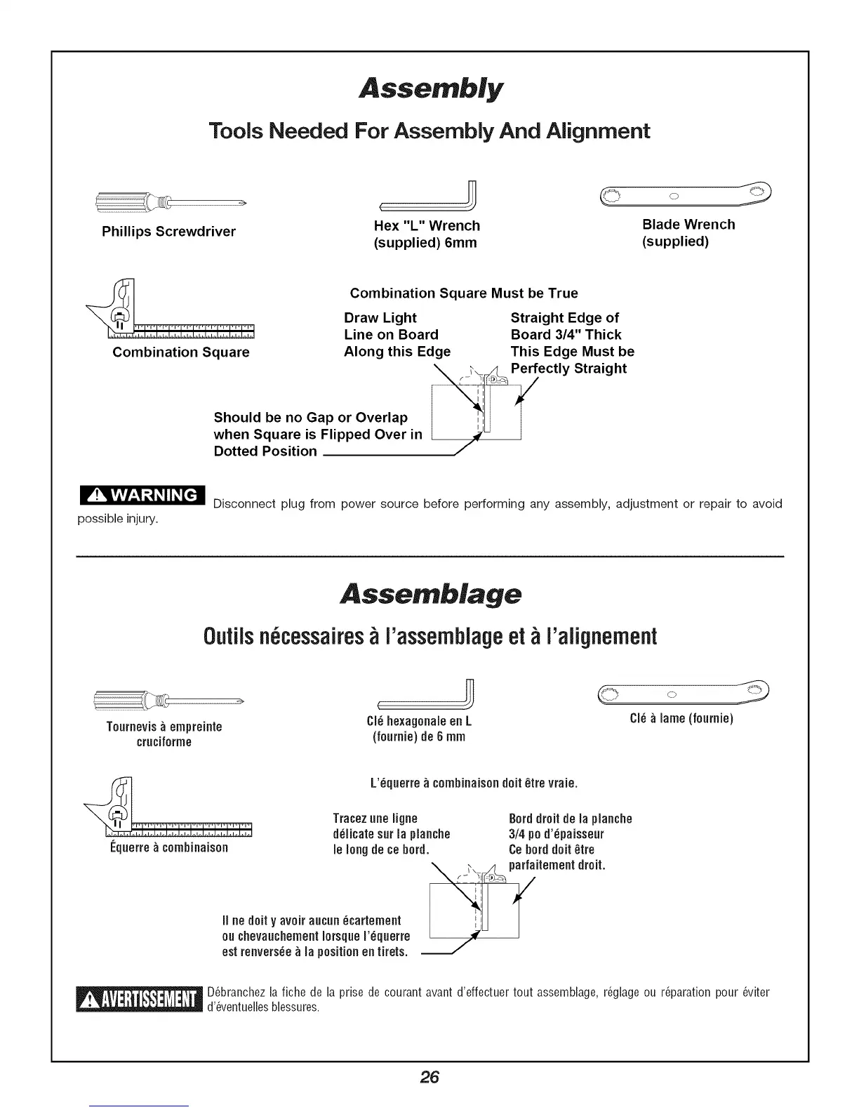 ! rr'_'A'l'-'1_i_ll_t:_Disconnect plug from power source before performing any assembly, adjustment or repair to avoid