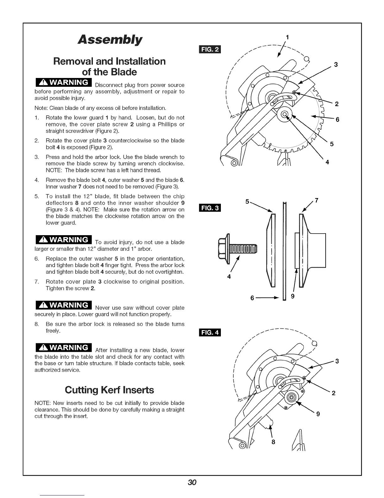 and tighten blade bolt 4 finger tight. Press the arbor lock