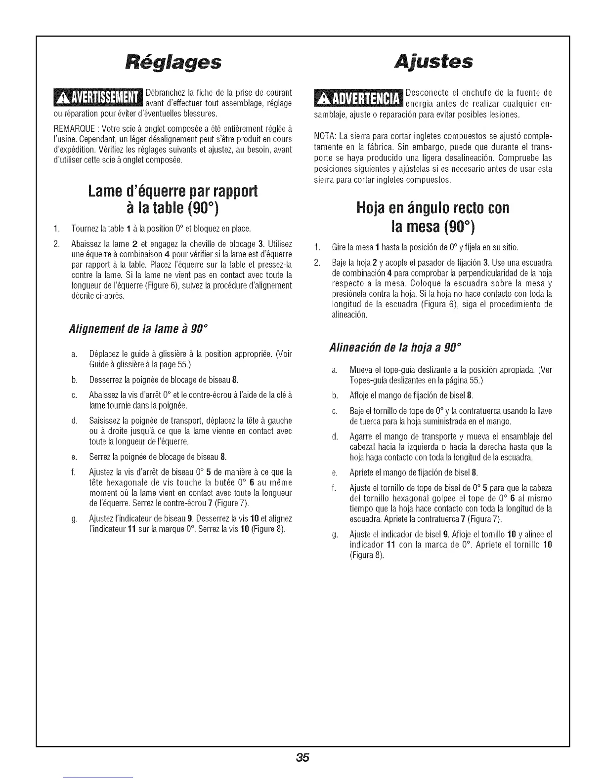REMARQUE: Votre scie b,ongletcompos@a 6t6 enti_rementr6gl@ b,