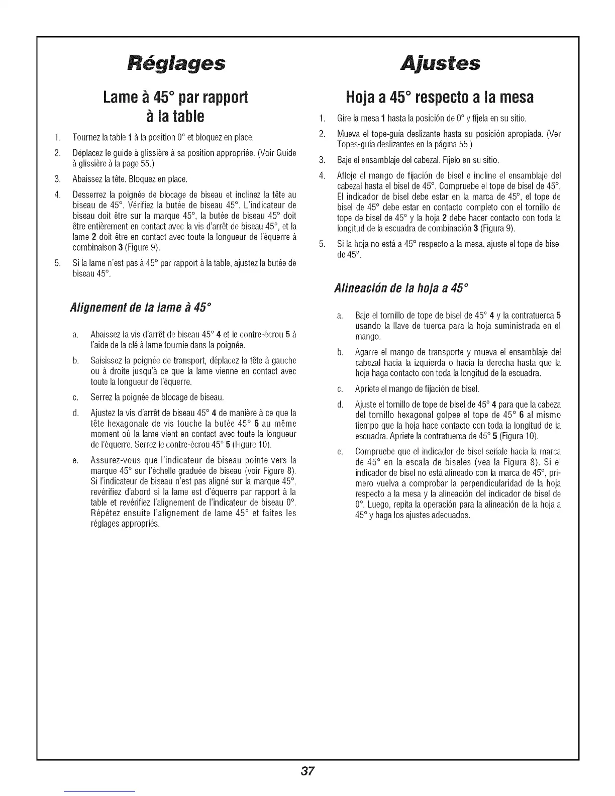 biseau de 45°. V6rifiez la butte de biseau 45°. L'indicateur de
