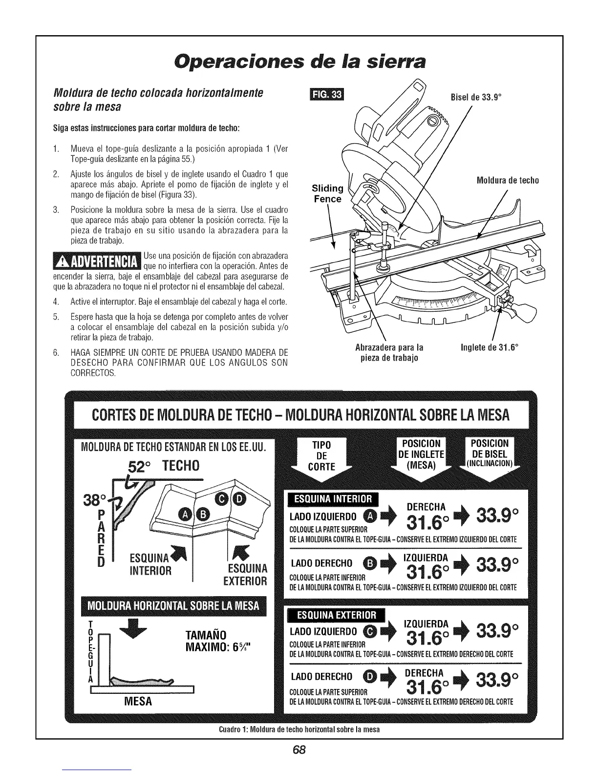 2. Ajuste los _,ngulosde bisel y de inglete usando el Cuadro 1 que
