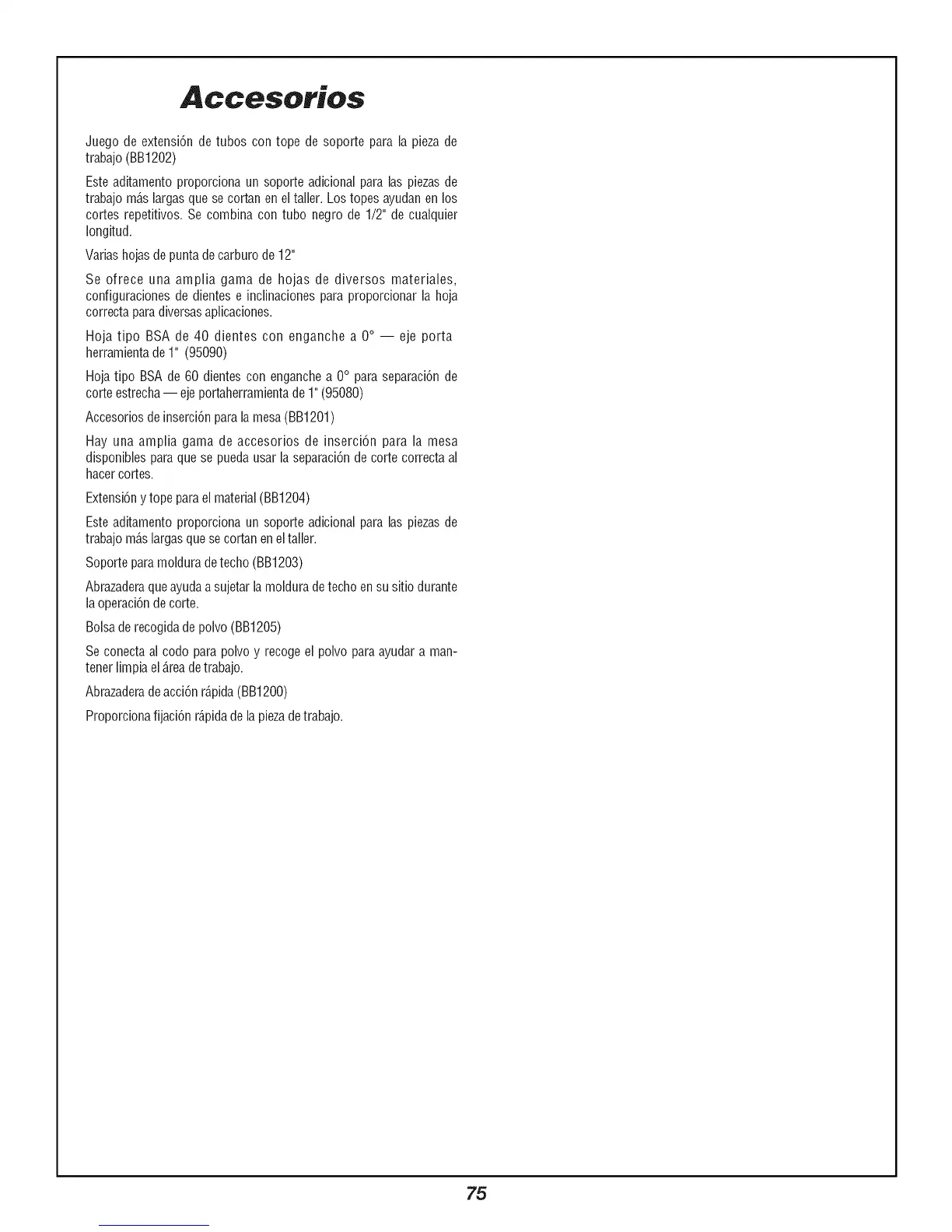 Accesoriosde inserci6nparalamesa(BB1201)