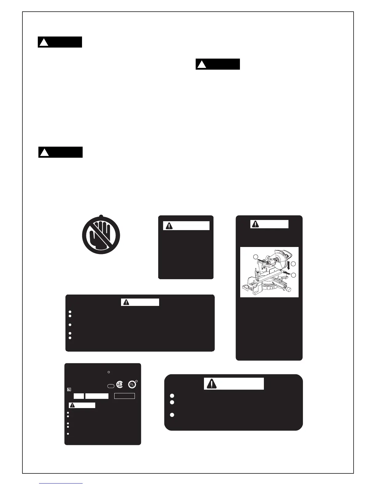 NEVER CROSS YOUR HANDS WITH THE PATH OF SAW BLADE. DO NOT REACH
