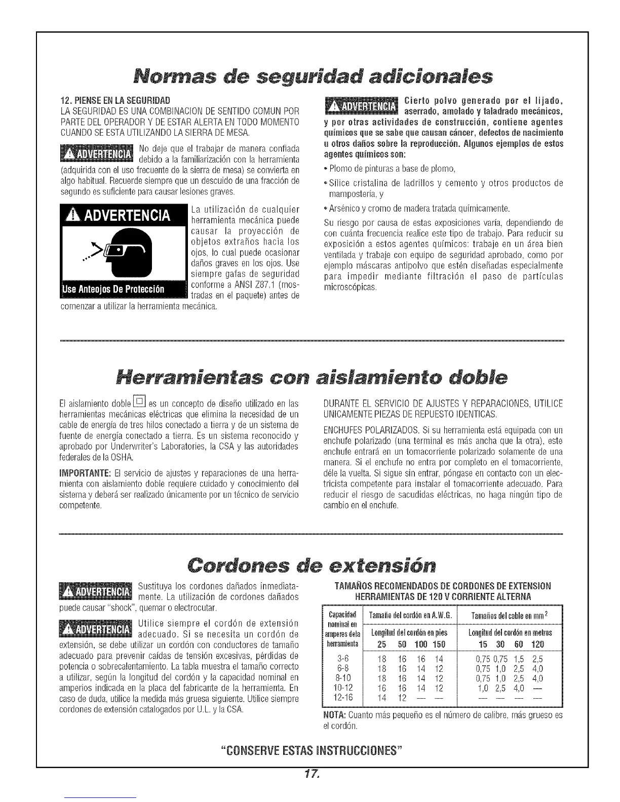 amperios indicadaen laplaca del fabricante de la herramienta. En