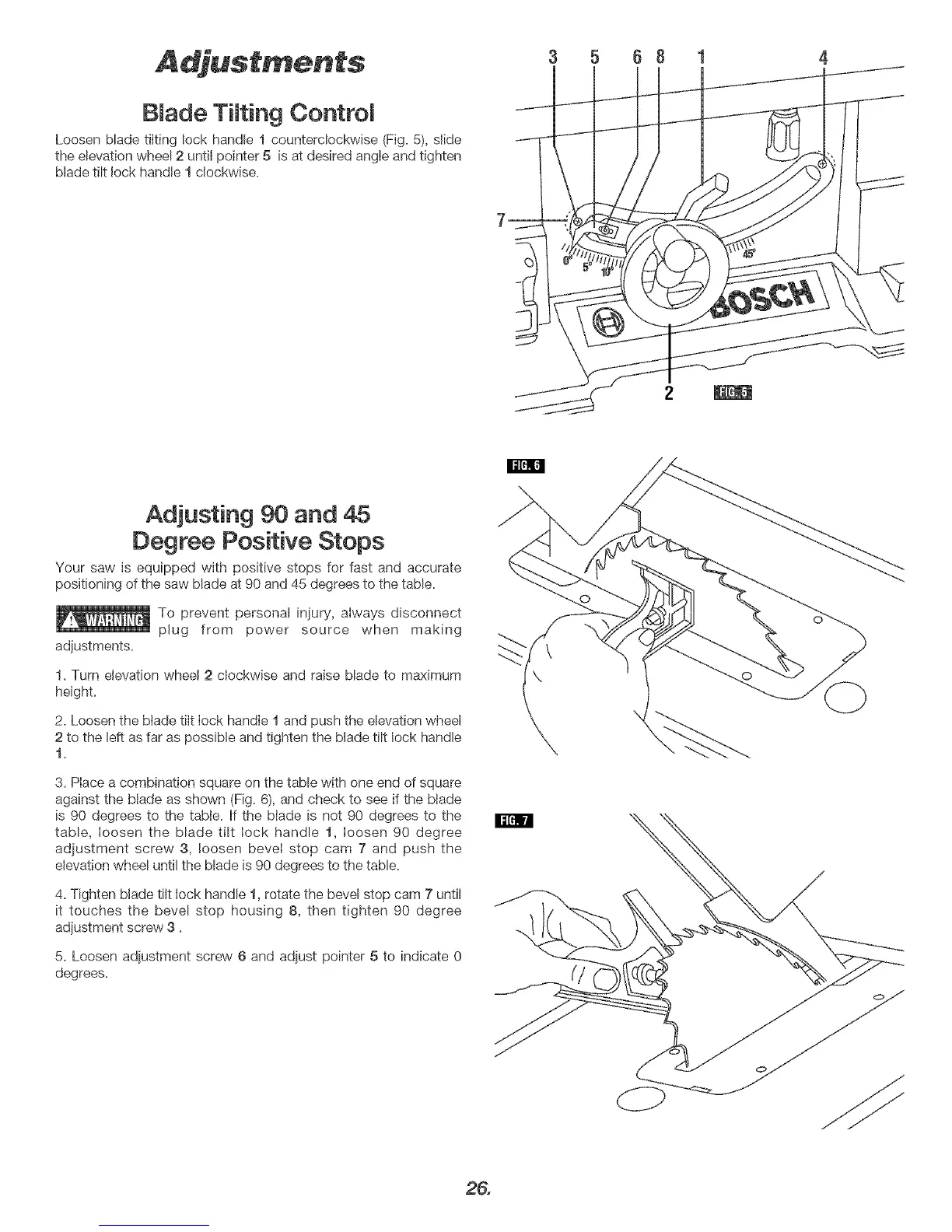 1. Turn elevation wheel 2 clockwise and raise blade to maximum