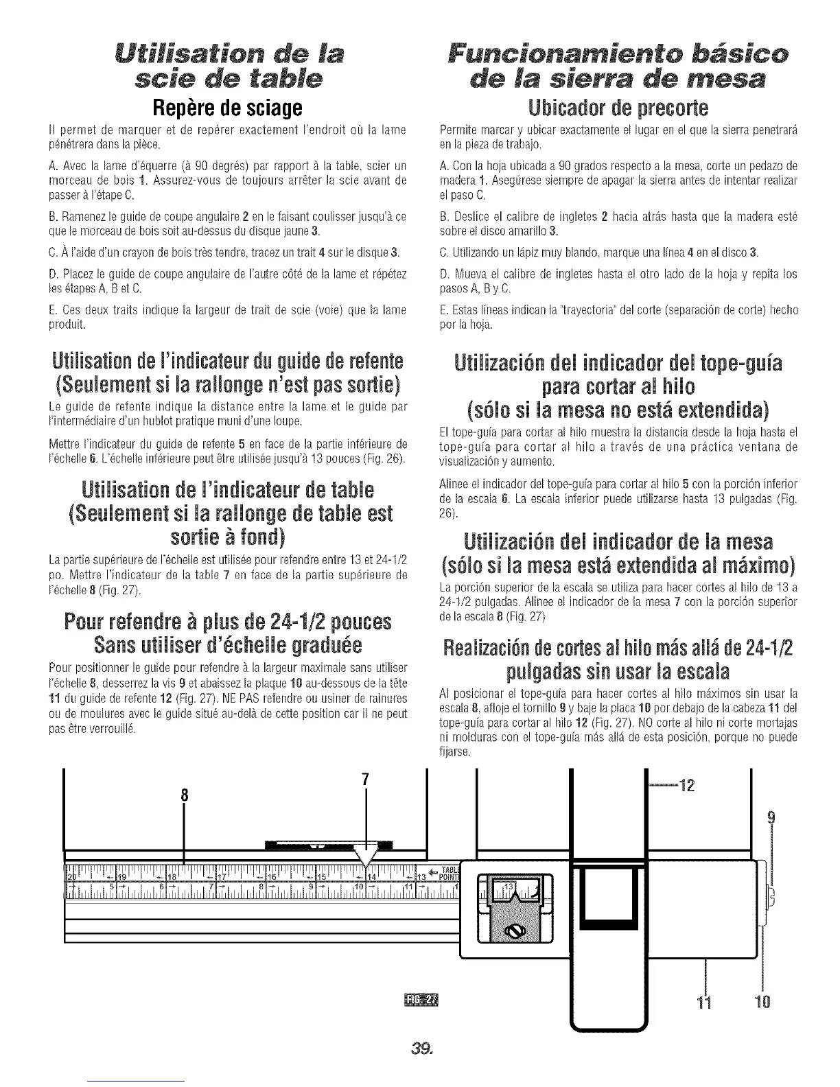 11 du guide derefente12 (Fig.27). NEPAS refendreou usiner de rainures