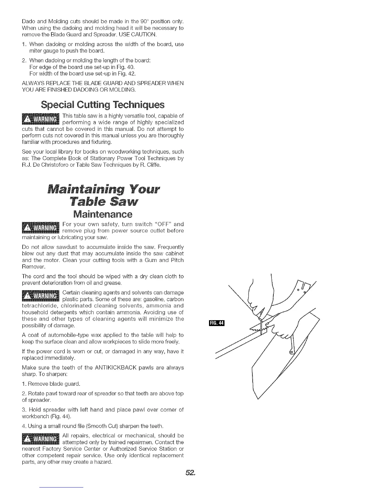 ALWAYS REPLACE THE BLADE GUARD AND SPREADER WHEN