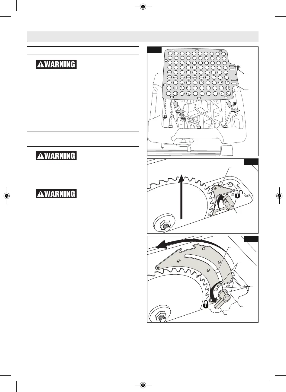 ensure pins engage riving knife holes. Lock
