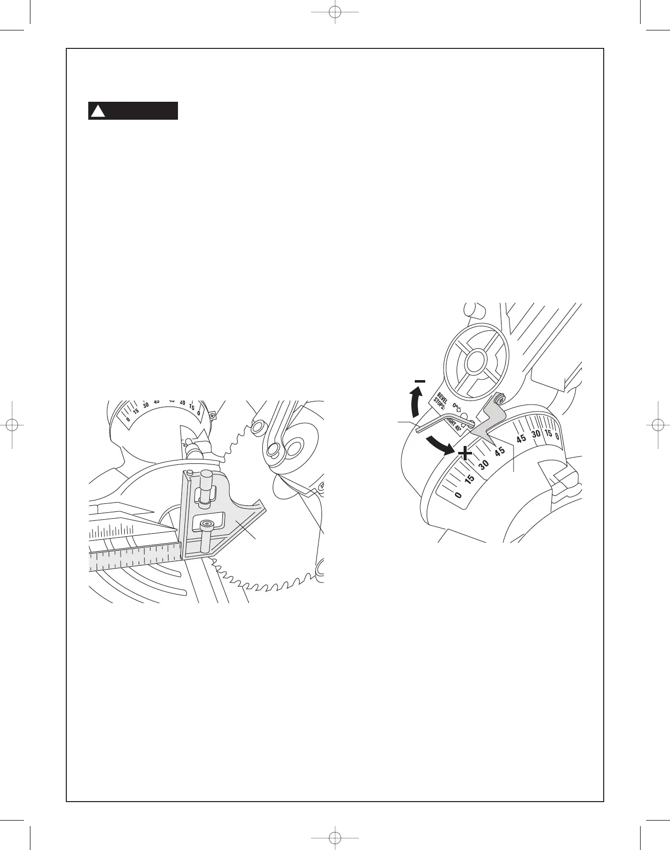 6. Ajuste el indicador de bisel en la línea de 45° de la escala de