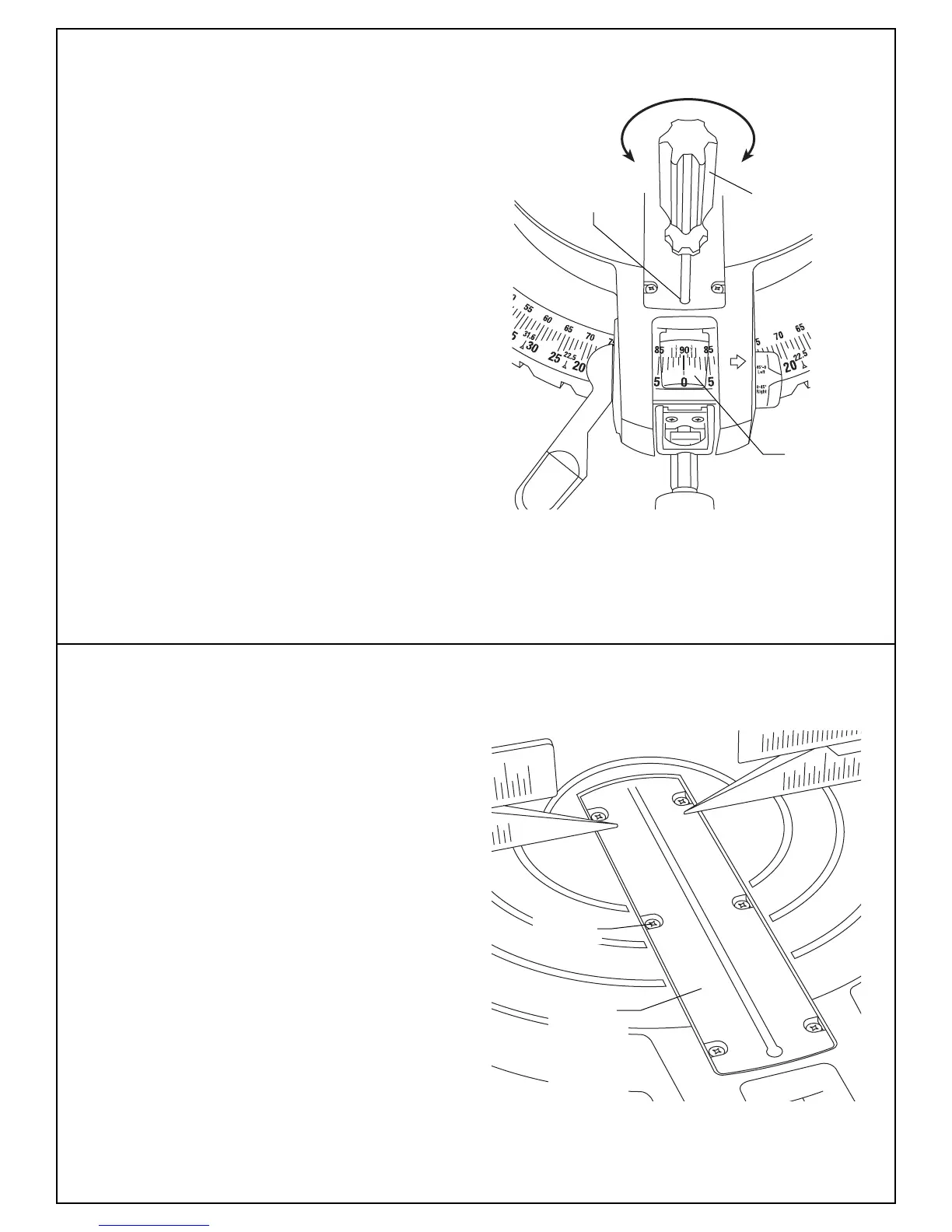 1. Ajuste la mesa a la posición de inglete de 0° y apriete el pomo