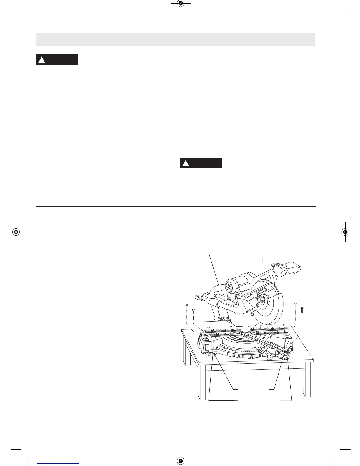 4. Place the miter saw on the workbench aligning