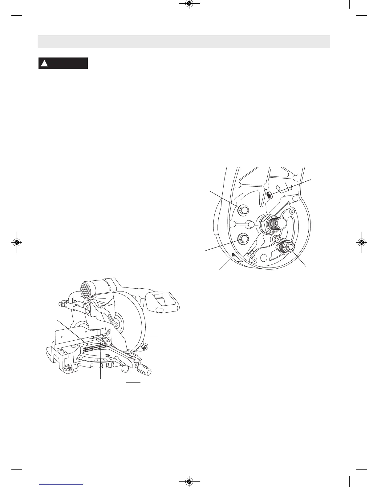 6. Incline el ensamblaje de la sierra hacia la izquierda y luego