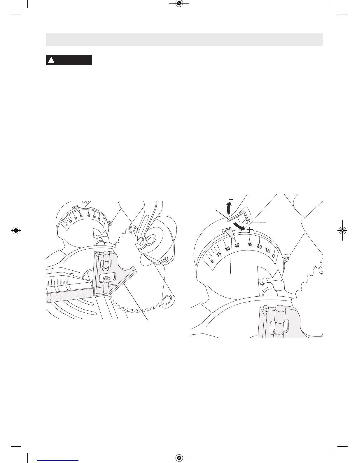 6. Ajuste el indicador de bisel en la línea de 45° de la escala