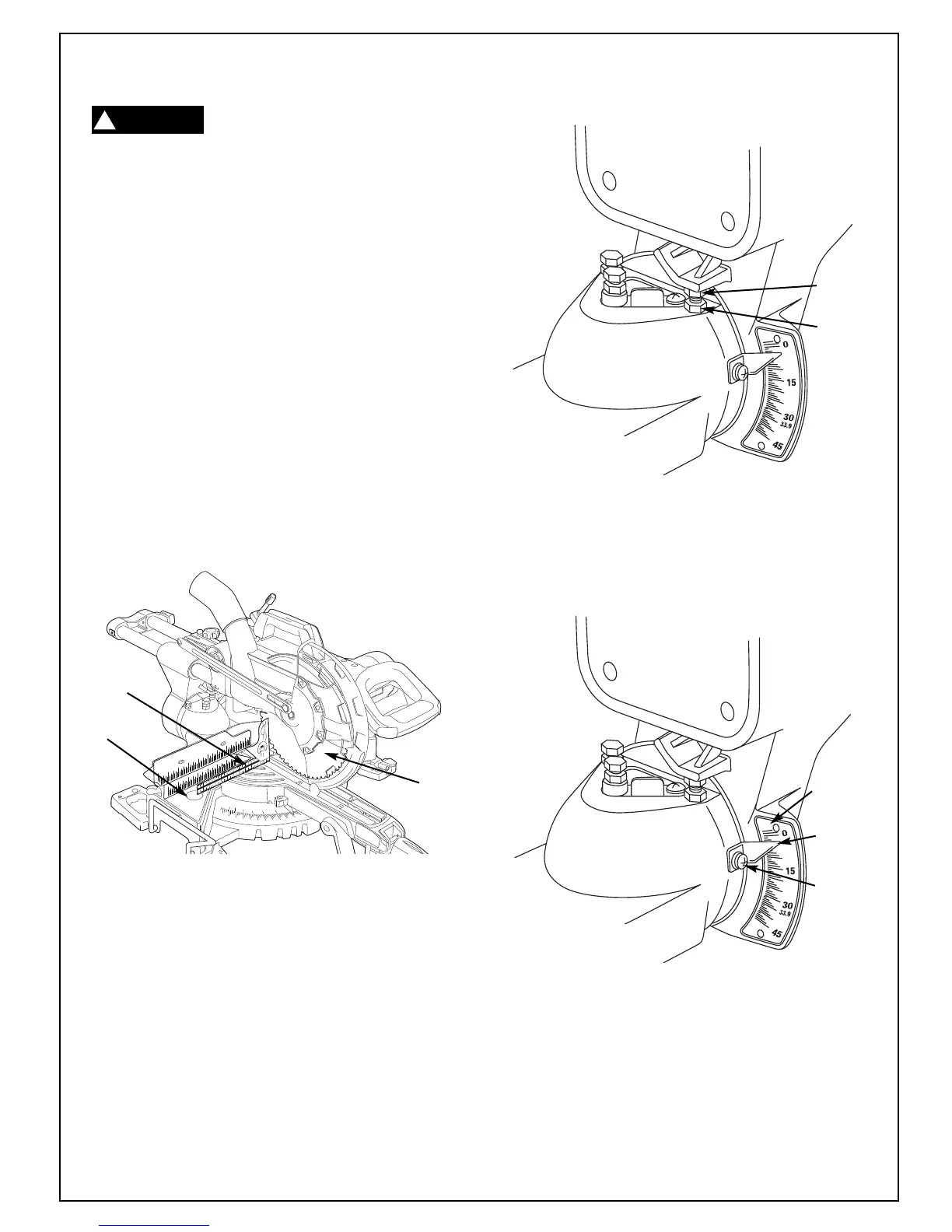 7. Adjust bevel indicator. Loosen screw and