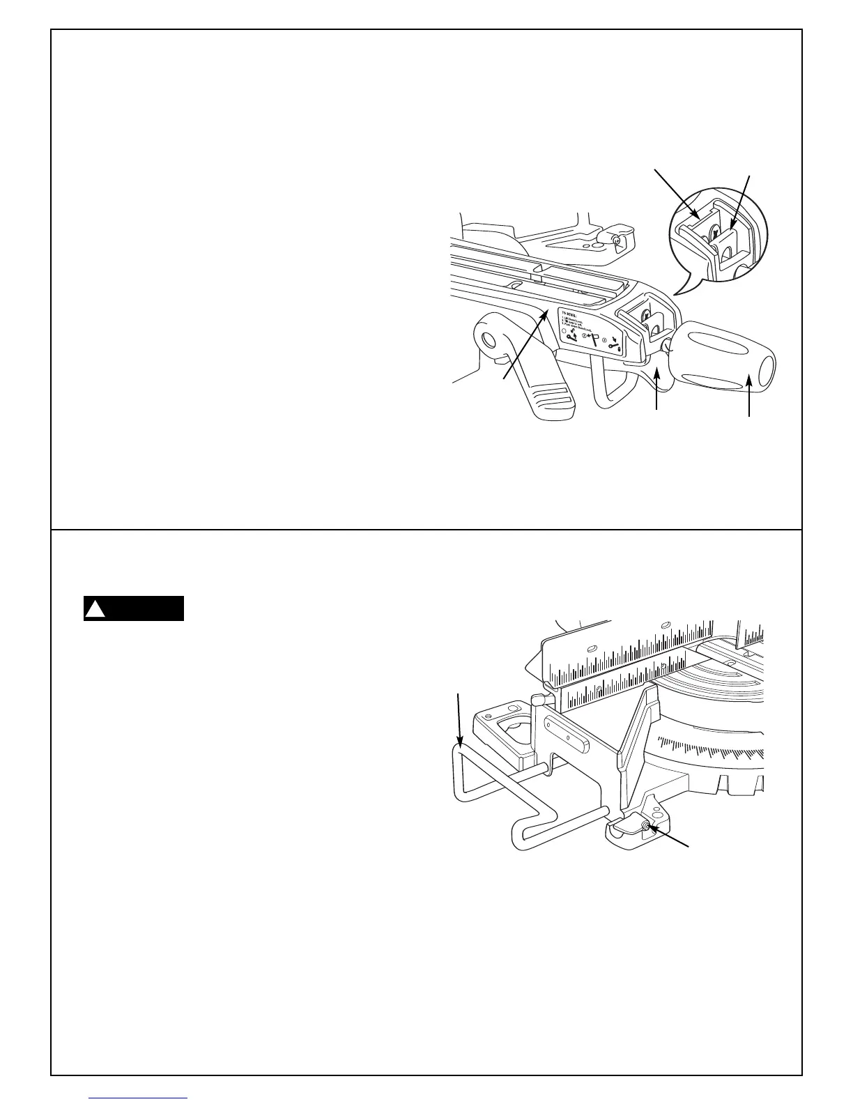 5. Loosen miter lock knob and lift the miter detent