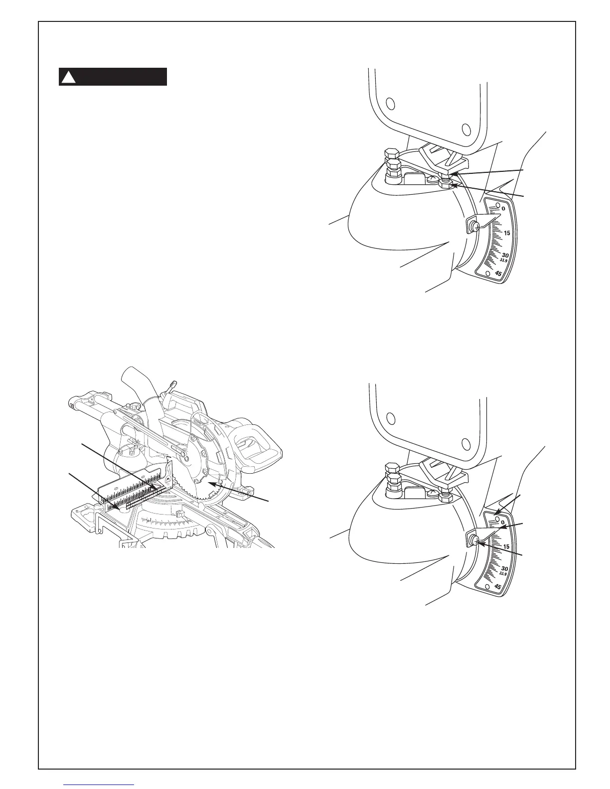 7. Ajuste el indicador de bisel. Afloje el tornillo y alinee el