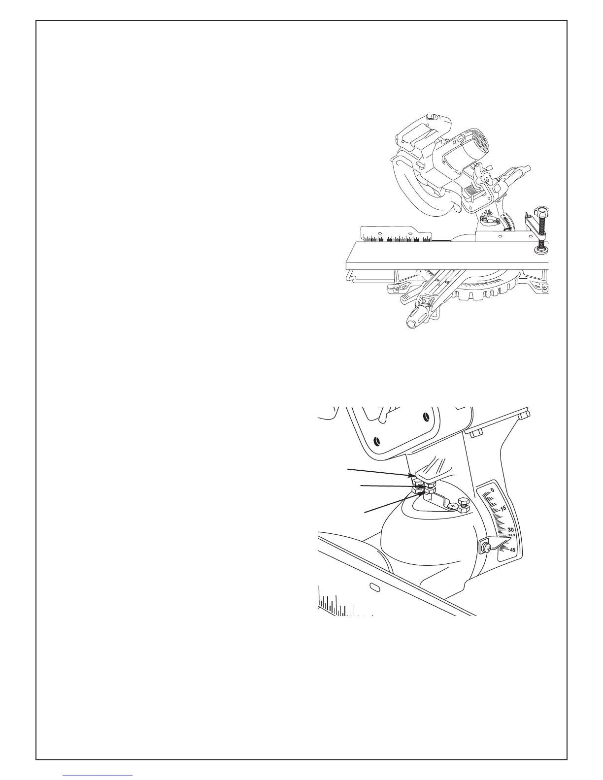 1. Baje la contratuerca del tornillo de tope de bisel de 33.9°