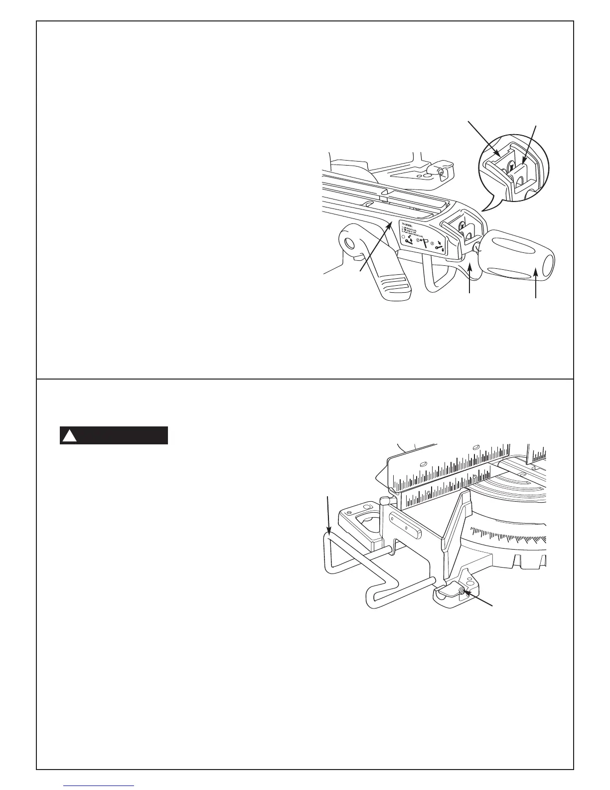 5. Afloje el pomo de fijación de inglete y suba el gatillo del retén