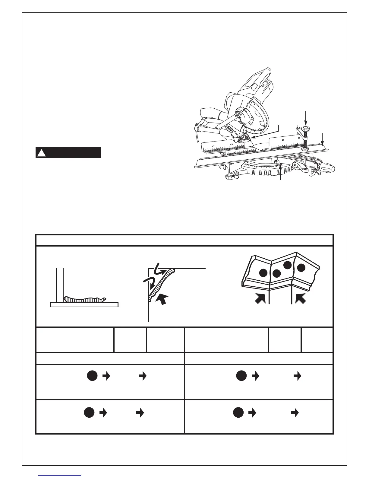 1. Ajuste los ángulos de bisel y de inglete usando el Cuadro 1 que