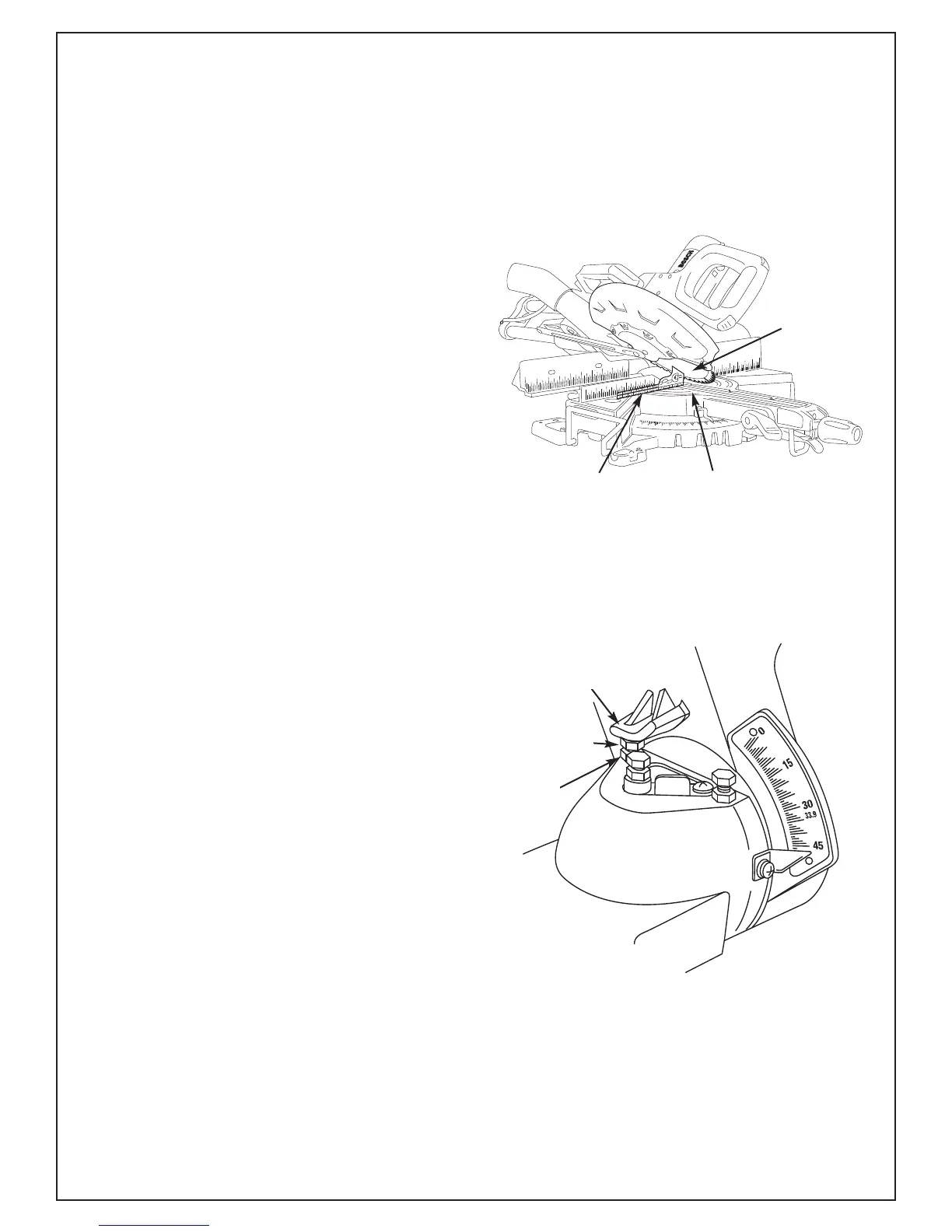 biseau de 45°. Vérifiez la butée de biseau de 45°. L'indicateur