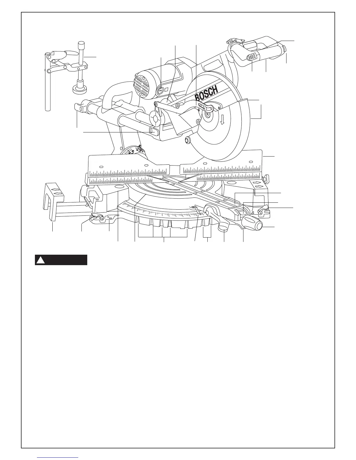 12. Gatillo de retén del inglete – Este gatillo suelta la mesa de la