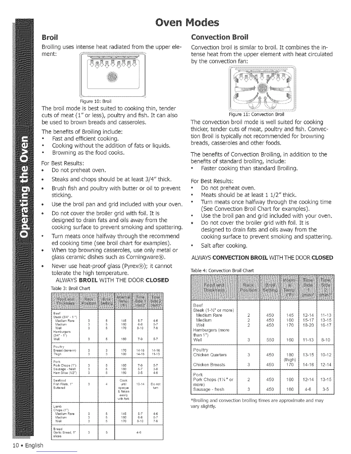 *Broiling and convection broiling times are approximate and may