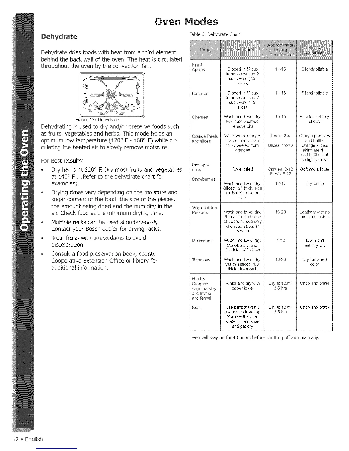 at 140° F. (Refer to the dehydrate chart for