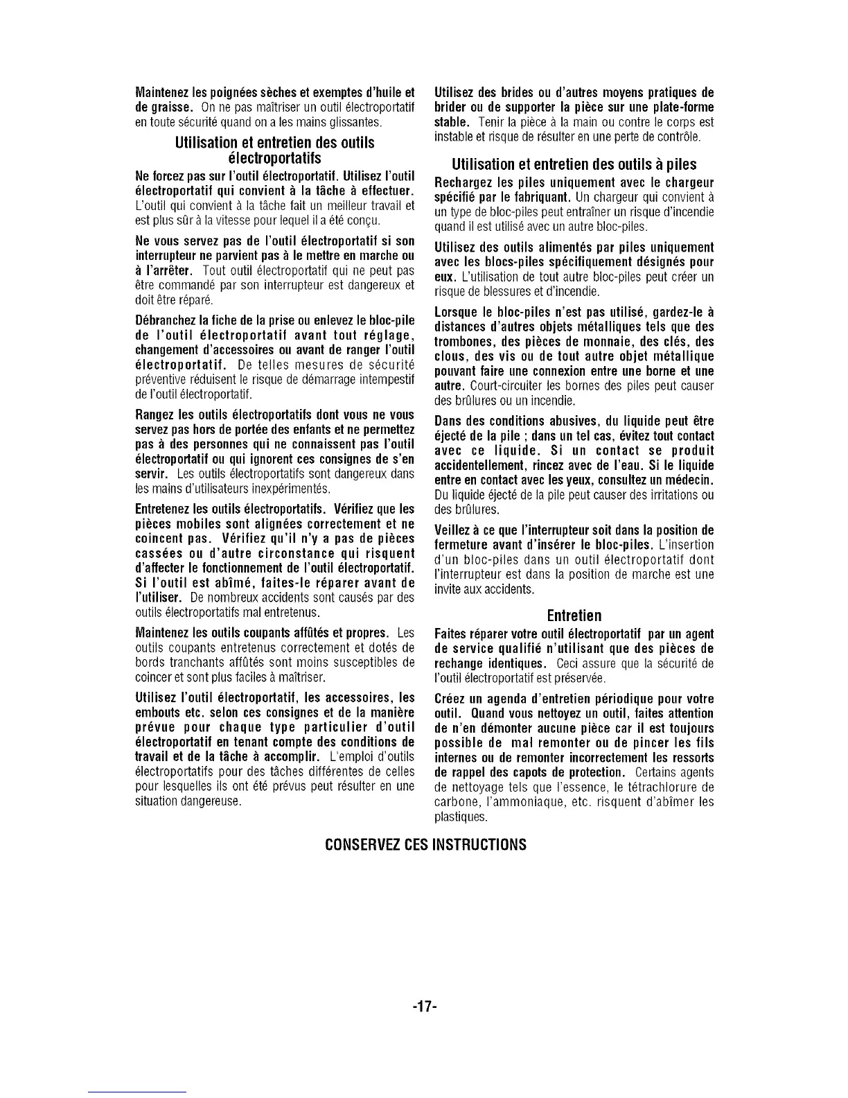 Utilisation et entretien des outils _ piles