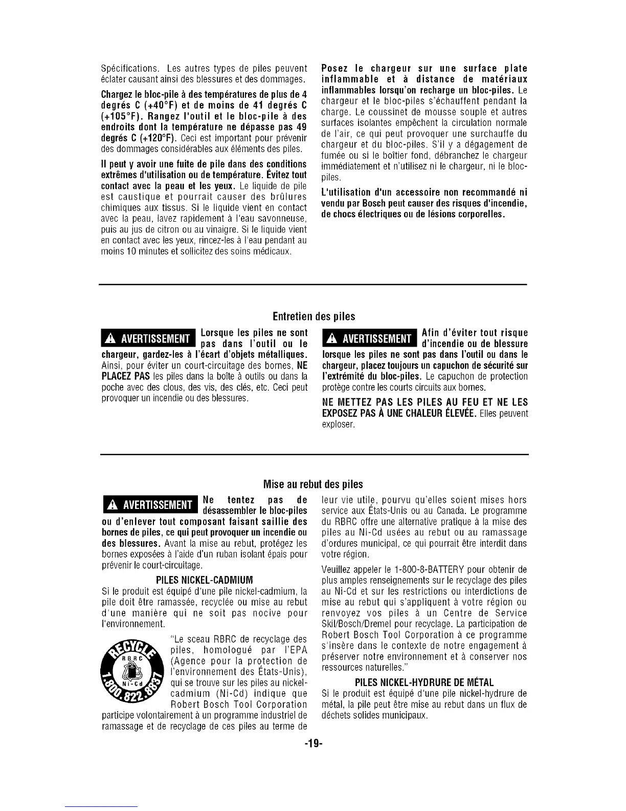 Veuillez appeler le 1-800-8-BATTERY pour obtenir de