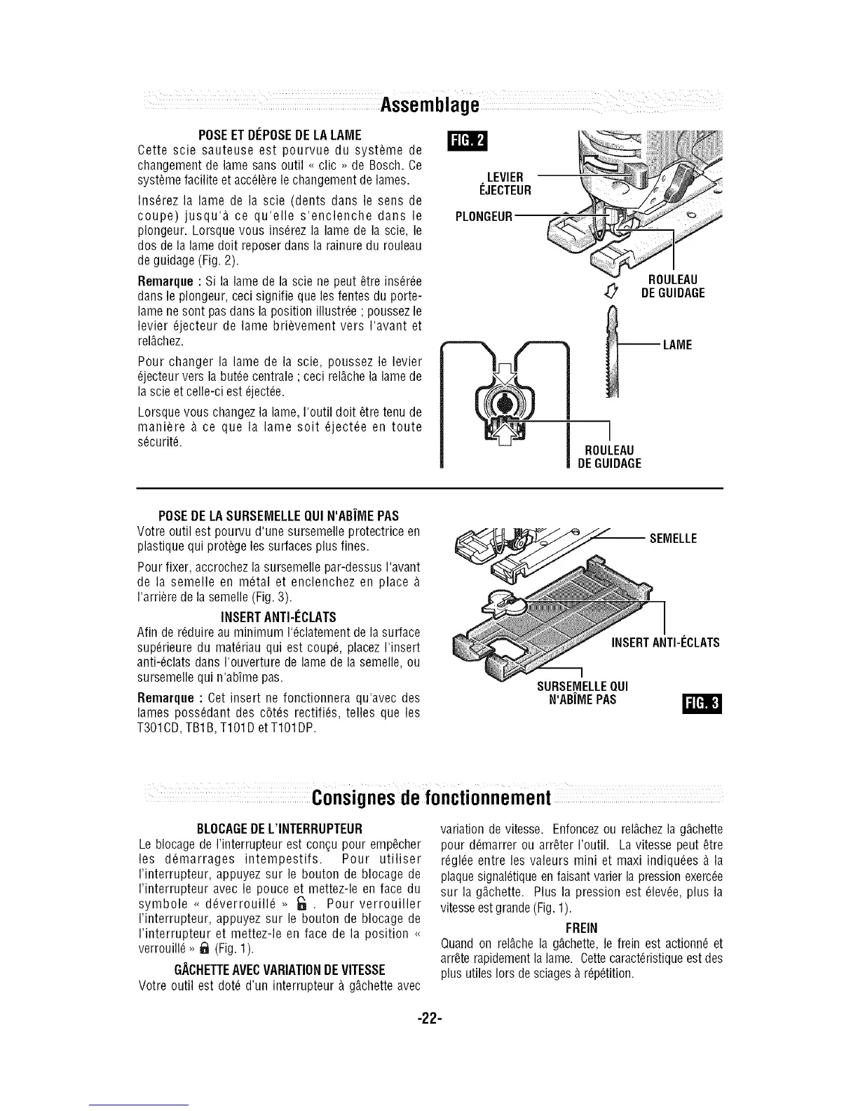 plongeur. Lorsque vous ins_rez la lame de la scie, le