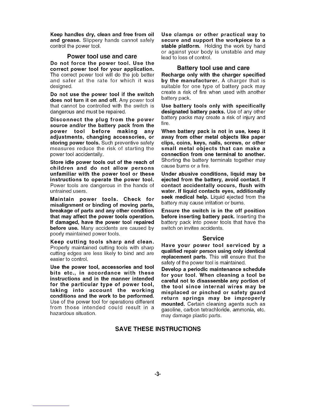 Bosch 52314 - General Safety Rules Continued; Power Tool Use and Care; Battery Tool Use and Care; Service