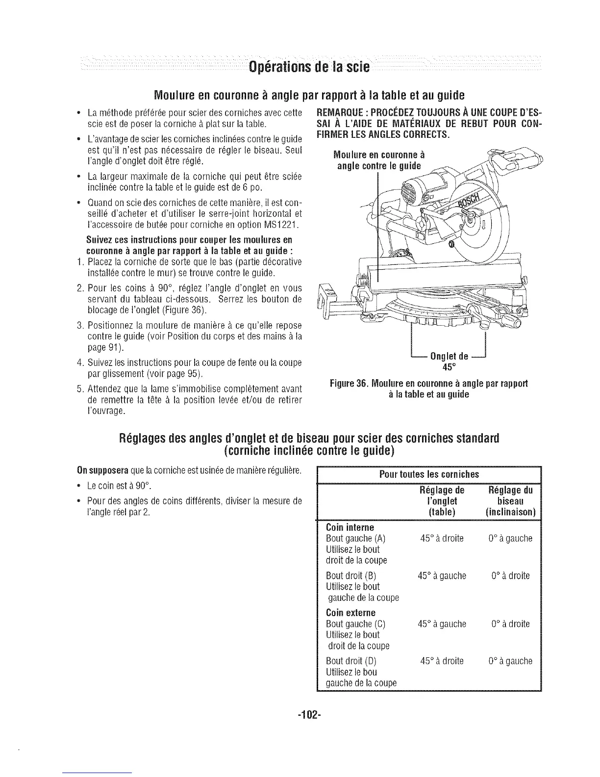Moulure en couronne_ angle par rapport_ la table et au guide