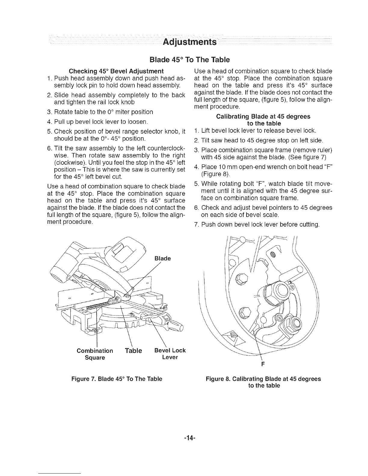 Figure 7. Blade 45° To The Table Figure 8. Calibrating Blade at 45 degrees