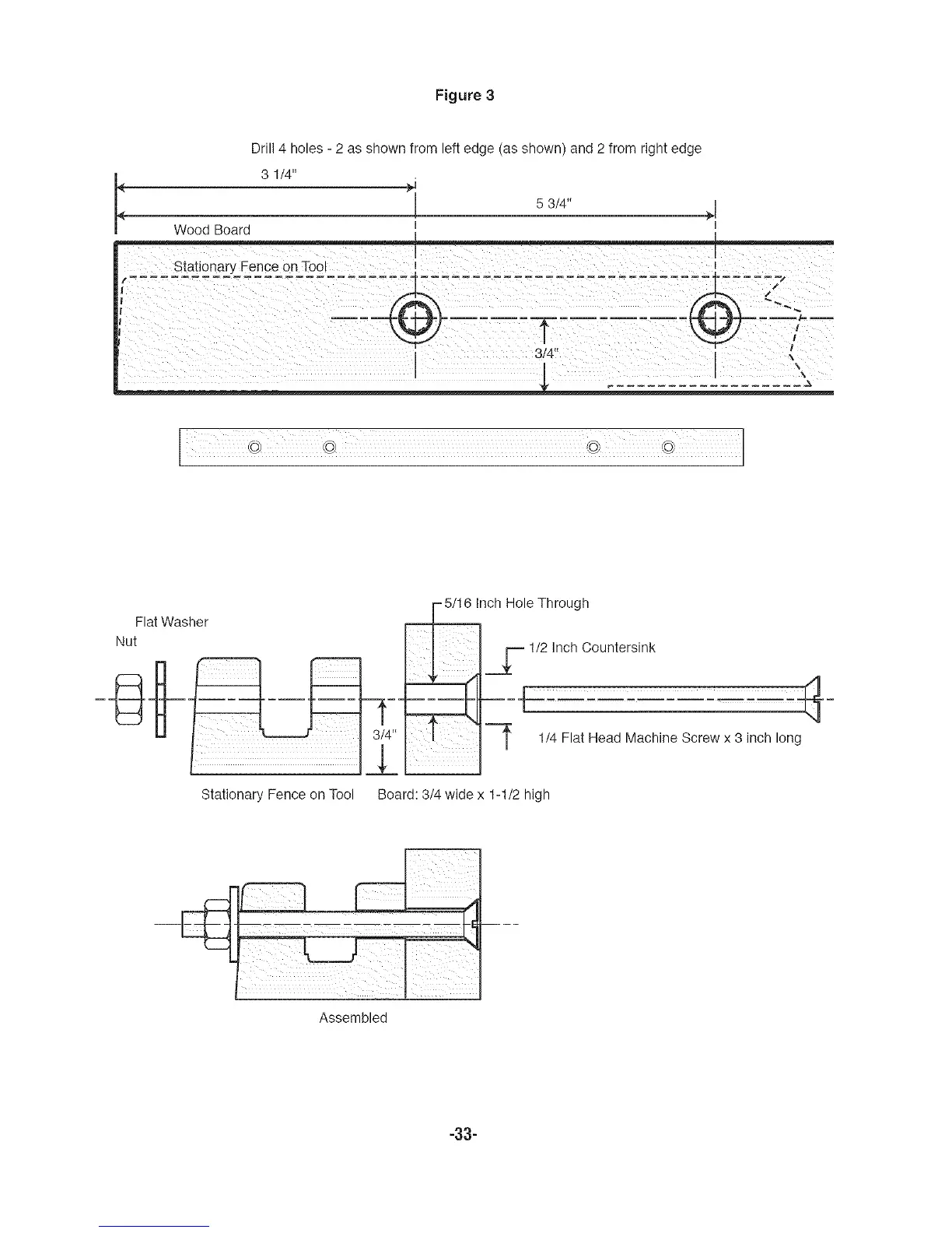 Stationary Fence on Tool Board: 3/4 wide x 1-1/2 high
