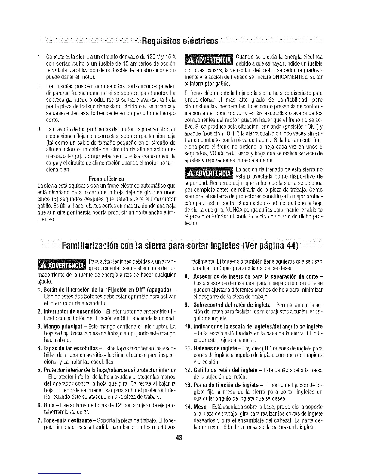 FamiJiarizaci6n con la sierra para cortar ingJetes(Ver p_gina 44)